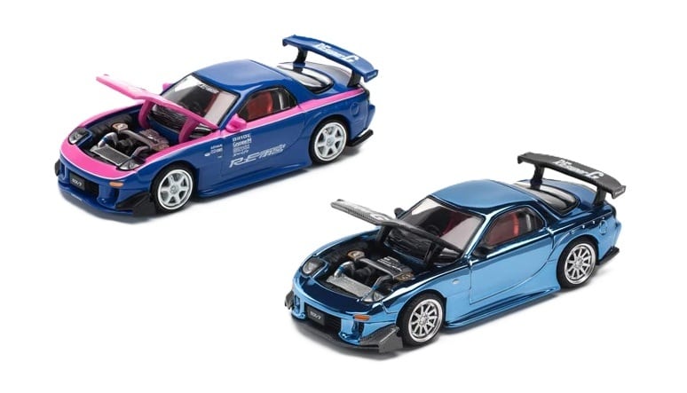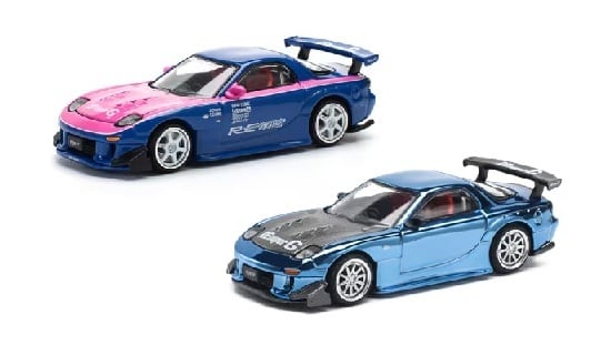 【商品紹介】POP RACE 1/64 MAZDA RX7 RE-AMEMIYA BLUE PINK & BLUE CHROME 2台セット