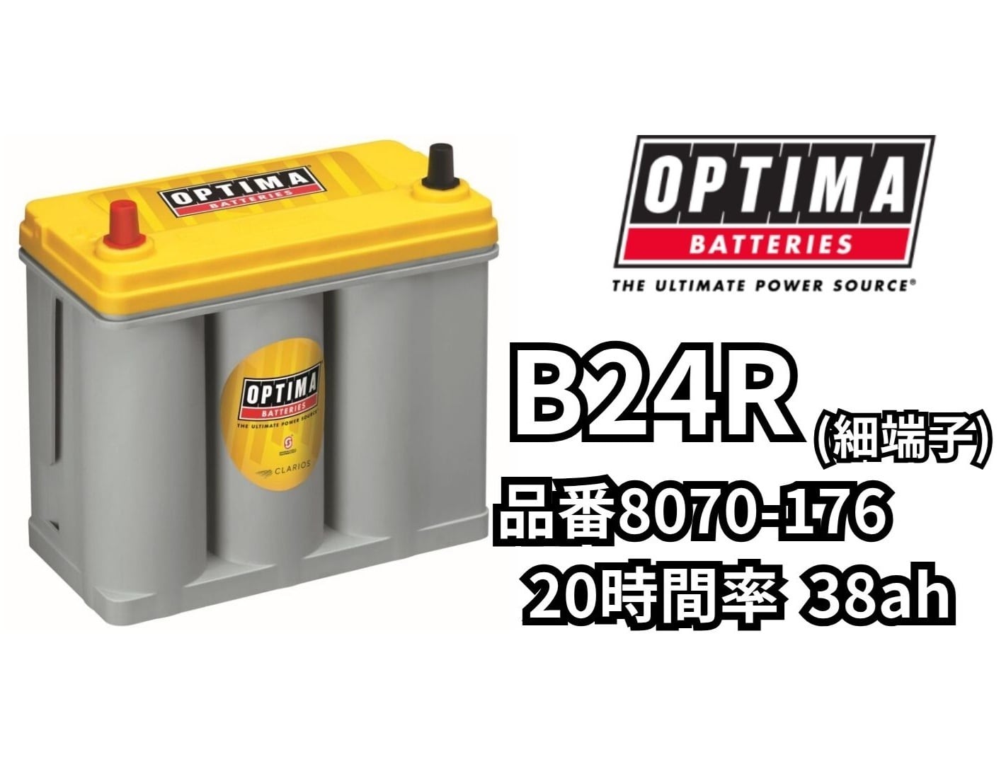 【個人宅配送不可、法人様のみ配送可】OPTIMA オプティマ バッテリー B24R T2 R端子(太) 38Ah イエロートップ 8071-176